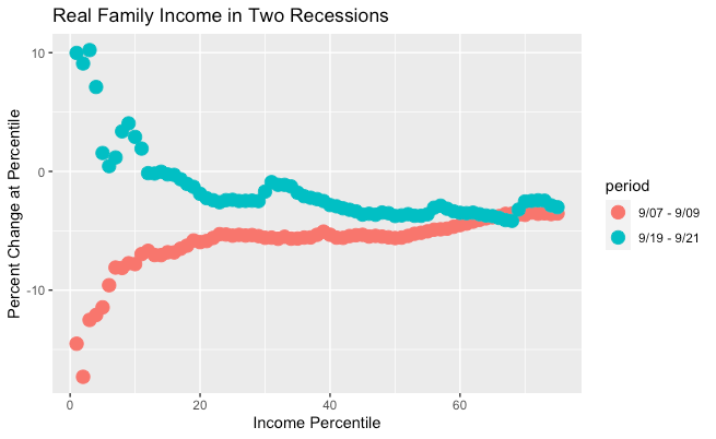 In a blog post JW Mason shows that during the Covid pandemic the State intervention mostly benefited the worst-off, unlike for 2008 crisis. Most people’s real income fell though.